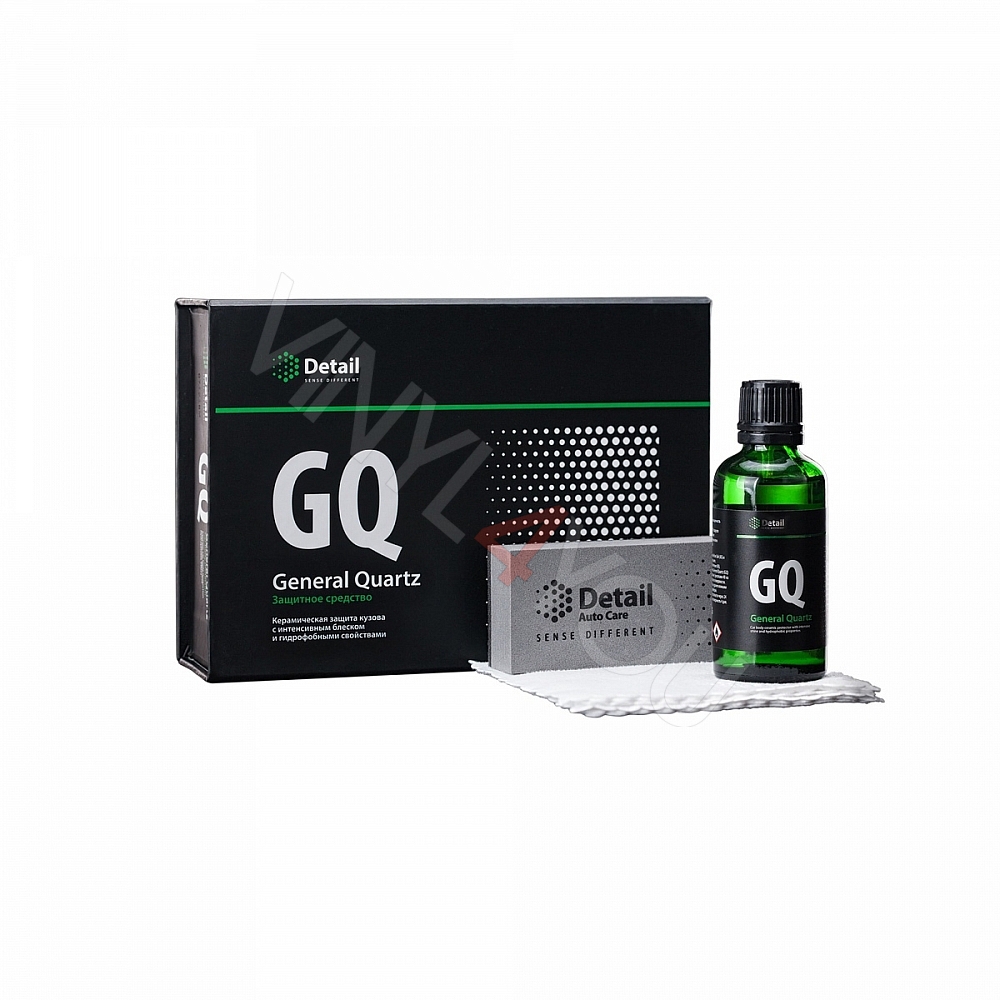 Керамическая защита кузова, придающая блеск и гидрофобные свойства. GQ «General Quartz» — самое продвинутое профессиональное защитное средство в линейке Detail Auto Care, которое обеспечивает максимально надежную защиту лакокрасочного покрытия, а также – зеркальный блеск, глубину цвета и придает гидрофобные свойства на длительное время благодаря содержанию SiO2. Гарантированная защита кузова автомобиля сроком до 2-х лет.