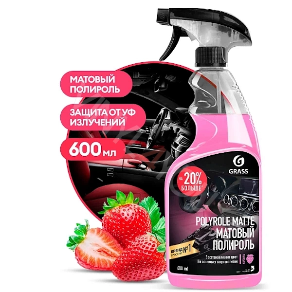 Профессиональный матовый полироль для обработки приборных панелей, очистки и полировки изделий из кожи, дерева, винила, пластика и резины. Сохраняет первоначальный цвет, не оставляет жирных пятен, препятствует оседанию пыли, придает матовый блеск. Средство обладает приятным ароматом.