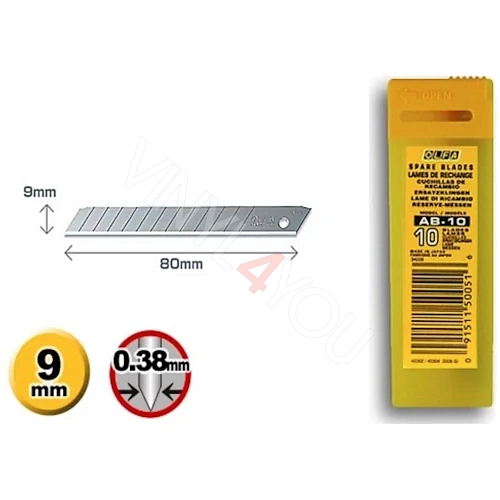 Стандартное стальное лезвие с 13-ю режущими сегментами и двойным углом заточки. Лезвие изготовлено по специальной технологии, разработанной компанией "OLFA", сопровождающегося многошаговому процессу доводки, который создает острою и долговечную режущую кромку.